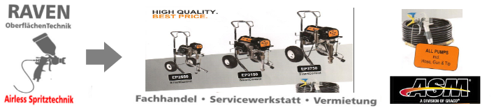 TOP Marken vertreten wir als autorisierte Fachvertretung mit Servicewerkstatt, Verkauf und Vermietung von Airless-Geräten, Ersatzteile und Verbrauchsmaterialen