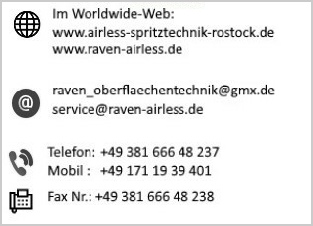 In Sachen derer Datenschutzerklärungen zu Web-Server-Hosting, können Sie dort nachfragen. Die RAVEN übernimmt keinerlei Verantwortung für Datenschutz, für die 1und1 WebHosting verantwortlich ist. Hinweis: Beim Besuch dieser Website verzeichnet der Web-Server der WebHosting Firma eventuell automatisch Log-Files, die keiner bestimmten Person zugeordnet werden können. Diese Daten beinhalten z. B. den Browsertyp und -Version, verwendetes Betriebssystem, Referrer URL (die zuvor besuchte Seite), IP-Adresse des anfragenden Rechners, Zugriffsdatum und -Uhrzeit der Serveranfrage und die Dateianfrage des Client (Dateiname und URL). Diese Daten werden nur zum Zweck der statistischen Auswertung gesammelt, um ein Internetangebot noch benutzerfreundlicher zu gestalten, das WebHosting bei Bedarf sicherer zu machen. Details dazu müssen Sie bei Bedarf beim Web-Hosting Unternehmen erfragen. Im Allgemeinen können Sie unsere Webseiten besuchen, ohne persönliche Daten einzugeben oder sich identifizieren zu müssen. Ansonsten verarbeiten wir persönliche Daten, die Sie beim Besuch unserer Internetseiten durch Ihrer Mitteilung über die Kontaktseite uns zuzusenden, gemäß den datenschutzrechtlichen Bestimmungen des deutschen Bundesdatenschutzgesetzes (BDSG) oder den Vorgaben der Richtlinie 95/46/EG (Datenschutzrichtlinie der Europäischen Union bzw. den Anforderungen des Landes in dem die für die Datenverarbeitung verantwortliche Stelle sitzt. Unsere Internetseiten können Links zu Internetseiten anderer Anbieter enthalten, auf die sich diese Datenschutzerklärung nicht erstreckt. Cookies: RAVEN-AIRLESS.DE alternative Namensnennung AIRLESS-SPRITZTECHNIK-ROSTOCK.de verwendet keine Cookies (das sind kleine Dateien, die von Ihrem Webbrowser auf Ihrer Festplatte gespeichert werden, um den Website-Besitzer in die Lage zu versetzen, persönlichere und maßgeschneiderte Inhalte und Services anzubieten.
